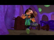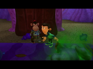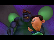 Sheen and Nesmith enter Doppy's unorganized and dark house. They are snuck up on by the miniture Dipthwak and are scared by him. They run ontop of a fridge where they feed him the taming-potion. It seems to work a little bit and the two hop down. An early victory celebration ensues as Dipthwak grows into a humongous beast. They are chased by this oversized creature until the potion does calm him down and he is able to speak coherently. He explains that he is upset about the disorganized state of the house and fixes up the mess.