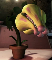 The plant seems to have some form of sentience because after it scared Cindy it turned around to the laughing Jimmy and Carl and gave them a thumbs up with its leaf hands before laughing itself.