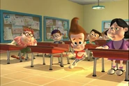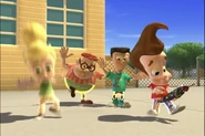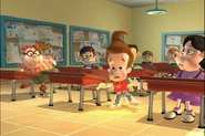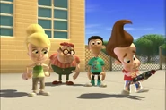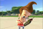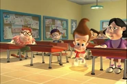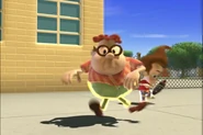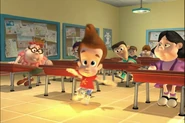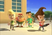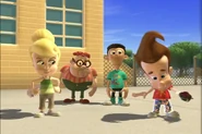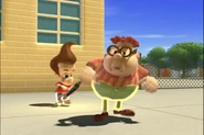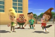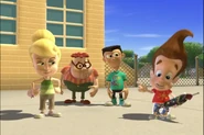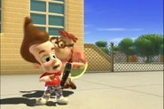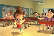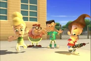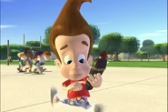 Being too lazy to pick up his pants, Jimmy's mother grounded him. Not wanting to pick them up himself, he designed a Nanochip that would make his pants put themselves away. But the next day, while he was at school, after arguing with Cindy, his pants started moving around on their own, making Jimmy rapidly move his legs in a sorta impromptu dance while he wore them. Later, outside Jimmy tried to explain the situation with his pants, but they began acting up again. They eventually even sent out a discharge to Cindy, Carl, and Sheen's pants and made them do the same. Just when Jimmy thought he had deactivated the chip, his pants took themselves off, much to his embarrassment. But Cindy, Carl, and Sheen’s pants did the same and ran off with Jimmy's Pants.